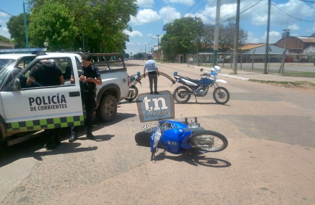 Cerca del mediodía del martes se registró un siniestro vial sobre la avenida Sarmiento altura José M Soto, el vehículo involucrado un automóvil Fiat Palio de color rojo dominio HCF 350 guiado por Roxana Fernández que colisiono a una motocicleta Motomel Blitz conducido por Nancy Martínez quien sufrió fuertes golpes tras el impacto y posteriormente la caída. La misma fue asistida por personal de Bomberos y traslada en ambulancia al nosocomio local.