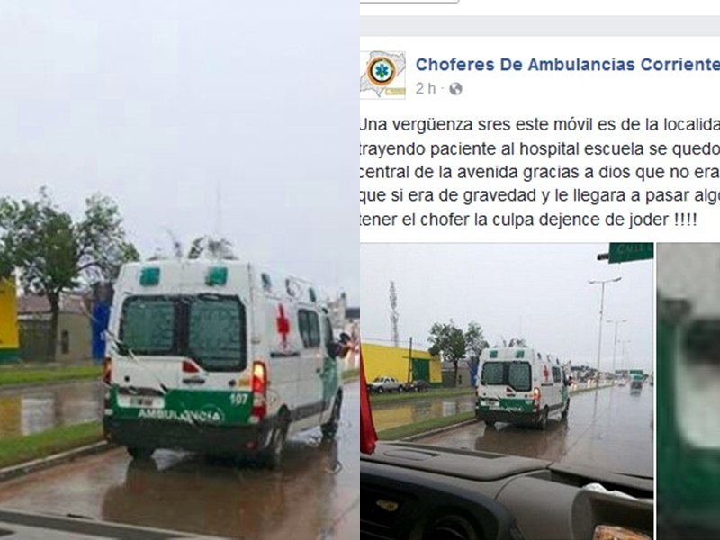 Una ambulancia del Hospital Regional de Goya, se quedó varada en la avenida 3 de Abril en la capital correntina, el motivo habría sido la falta de combustible. La noticia corrió por las redes sociales con la foto de la unidad quedada, un chofer de ambulancia de una empresa privada de la Cruz, tomo imágenes e hizo viralizar, al cual una cuenta de Facebook, de nombre Choferes ambulancias Corrientes, también publicaron repudiando lo ocurrido. “Las ambulancias de Goya salen a la Ruta con muy poco combustible en el día de hoy 25/10/2016 la ambulancia del hospital de Goya patente, OAG 077 quedo sin combustible”; es parte de la publicación. TNGOYA, pudo saber que trasladaba a un joven que se accidento el pasado sábado.