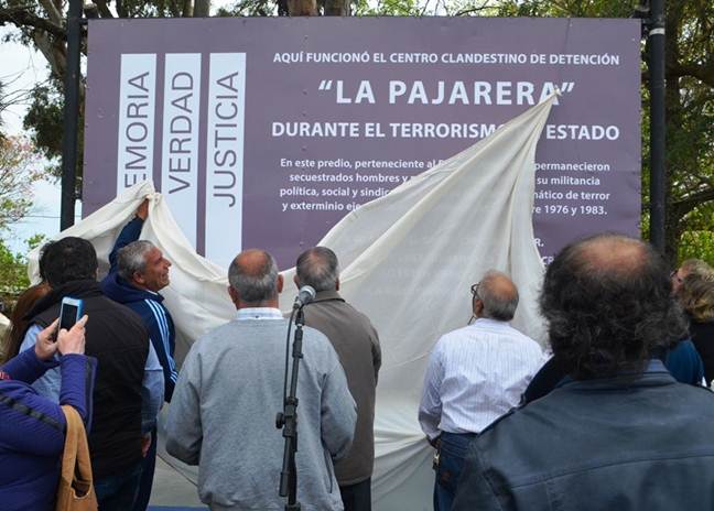 El intendente Gerardo Bassi descubrió el cuarto cartel de Señalización de Sitios de Memoria, en ‘La Pajarera’, frente al ex Campo Hípico del Ejército, este jueves por la mañana, junto víctimas, familiares y testigos del terrorismo de estado, a los organismos y militantes de Derechos Humanos de la región.
