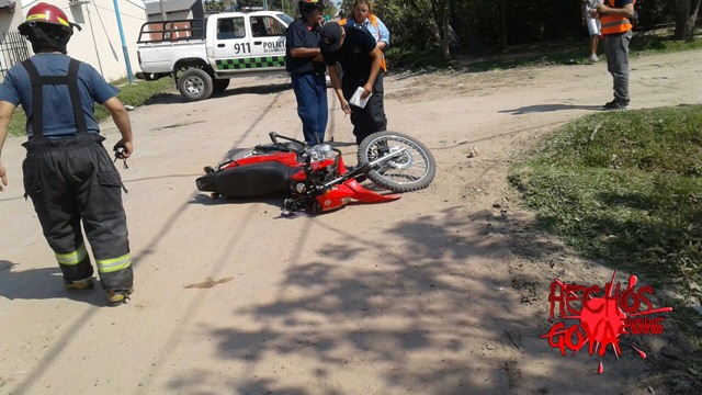 En la noche del domingo un motociclista identificado como López Antolín oriundo de Santa Cruz a bordo de una moto cayó al suelo tras colisionar un montículo de tierra en calle Bartolomé Mitre esquina José María Paz. Tras ser asistido por personal de bomberos, fue trasladado en ambulancia al nosocomio. López aliento etílico al momento d ser asistido.