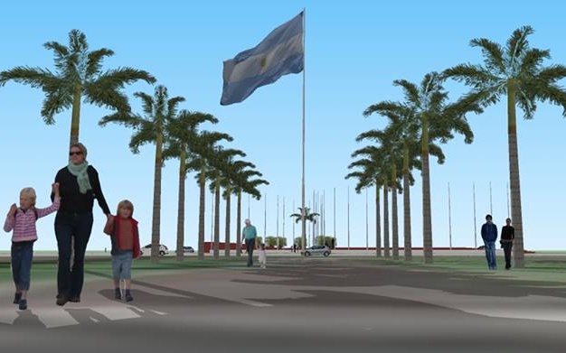 El municipio construye La Plaza de los Inmigrantes con un mástil de 45 metros en el acceso a Goya