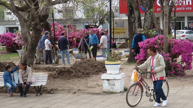 El intendente Gerardo Bassi, acompañado de funcionarios municipales, constató los trabajos de arreglos floreales, pintura y marcado de vereda en plaza Mitre. Allí, áreas municipales dependientes de la secretaría de la Producción trabajan en el arreglo y embellecimiento del céntrico paseo público.