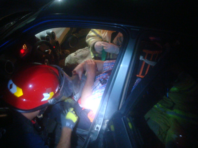 En la noche del miércoles se registró un accidente de tránsito, en Ruta Provincial N° 27 a la altura del Cartódromo, en el acceso a Santa Lucía por Avda. Presidente Raúl Alfonsín. Un automóvil Volkswagen Gol conducido por un goyano de apellido Ganduya colisionó la parte trasera de una camioneta que se disponía a ingresar a la ciudad. Ganduya sufrió lesiones en su rostro, uno de sus brazos y rodilla. Fue atendido por Bomberos Voluntarios que debieron extraerlo del automóvil. (IMAGEN)