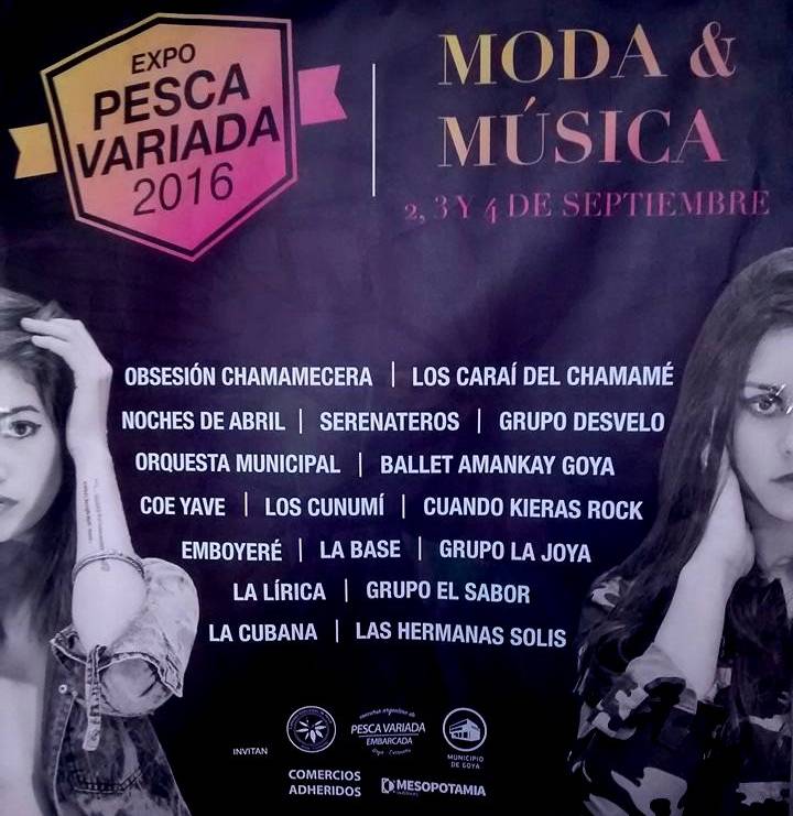 La municipalidad de Goya, Interclubes de Pesca y comercios amigos invitan este fin de semana a disfrutar de una serie de eventos de alto nivel con la noche de la Moda y Música, en el playón de Costanera. También habrá Feria de Artesanos y Emprendedores locales y foráneos. Desde el viernes empezarán a desfilar por el escenario artistas consagrados. La programación incluye grupos de danzas y musicales de los géneros folclórico, chamamecero, latino y rock, con entrada libre y gratuita.