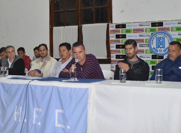 En la noche de este Jueves Huracán Football Club presentó oficialmente a su Cuerpo Técnico y Plantel para encarar la temporada 2016 del Torneo Federal B. Estando presente en la mesa principal el Presidente de la Institución celeste Eduardo Esmay, estando acompañado por el Vicepresidente Francisco Hormaechea, el Secretario General Mariano Andino, el Director Técnico del Plantel Profesional Hugo Alberto Morales, el Ayudante de Campo Ramón Andres Caneva, el Auxiliar Técnico Maximiliano Ruiz Díaz y el Preparador Físico Sebastian Montenegro.
