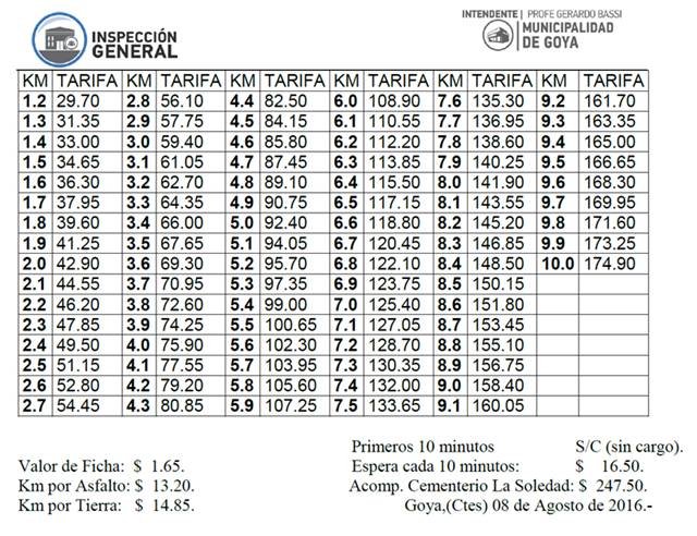 El director de Inspección General, Agustín Riveira explicó que debido al incremento ocurrido en los valores de combustible, el DEM actualizó la escala tarifaria de taxis y remises a $1,65 la ficha, con una mínima de 1,2 kilómetros ($29,70). “Esperemos que los remiseros puedan seguir teniendo rentabilidad y no se le haga tan difícil al usuario” dijo Riveira.
