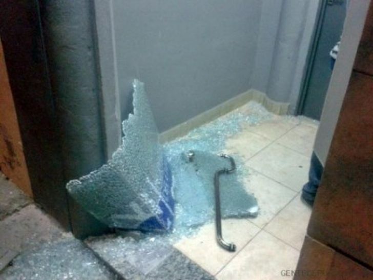 Estallo el cristal de la puerta blindex en cajeros Banco Nación