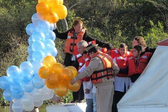 El intendente Gerardo Bassi acompañó la suelta de globos realizada por la Escuela N°218 “Sofía Chalub”, este jueves en el puerto de Goya. El evento se llevó a cabo en consonancia con los actos escolares que celebraron el Bicentenario de la Declaración de la Independencia Argentina.