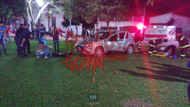 tras realizar una extraña maniobra, perdió el control del rodado y se metió de lleno a la plaza Italia donde se llevó por delante a tres jóvenes que caminaban. Las víctimas