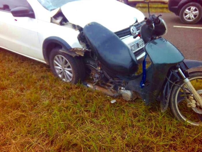 En la tarde del martes se registró un trágico siniestro vial, entre una camioneta Volkswagen y una motocicleta, donde perdió la vida un hombre que aún se desconoce la identidad, debido a que no tenía documentación encima. El occiso iba de acompañante en una motocicleta 110 c.c marca Zanella, el conductor se encuentra en estado delicado en el Hospital Regional de Goya, y hasta el momento no se conoce la identidad. El trágico hecho ocurrió sobre Ruta 12 a la altura del KM 825, cruzando el paraje Maruchas. Los vehículos involucrados transitaban sentido oeste-este, siendo impactado de atrás el rodado menor, quedando incrustado contra la parte derecha de la camioneta.