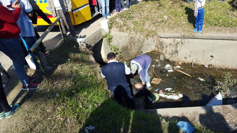 Pasajero del interno 106 de empresa Silvia del servicio urbano, termino dentro de un canal de desagüe, el hecho tuvo lugar en Avda. Juan Perón y ex vía, “se bajó, aparentemente se resbalo y termino cayendo de espaldas dentro del canal”; relataron las autoridades a cronista de TNGOYA en el lugar. Algunos pasajeros y el chofer de apellido Machuca se arrojaron para asistirlo, a la espera de bomberos, quienes lo sacaron en una tabla de raquis y luego fue trasladado en ambulancia al Hospital. Algunos testigos presenciales comentaban que el chofer estaciono muy sobre el borde y eso hizo que perdiera el equilibrio al bajar.