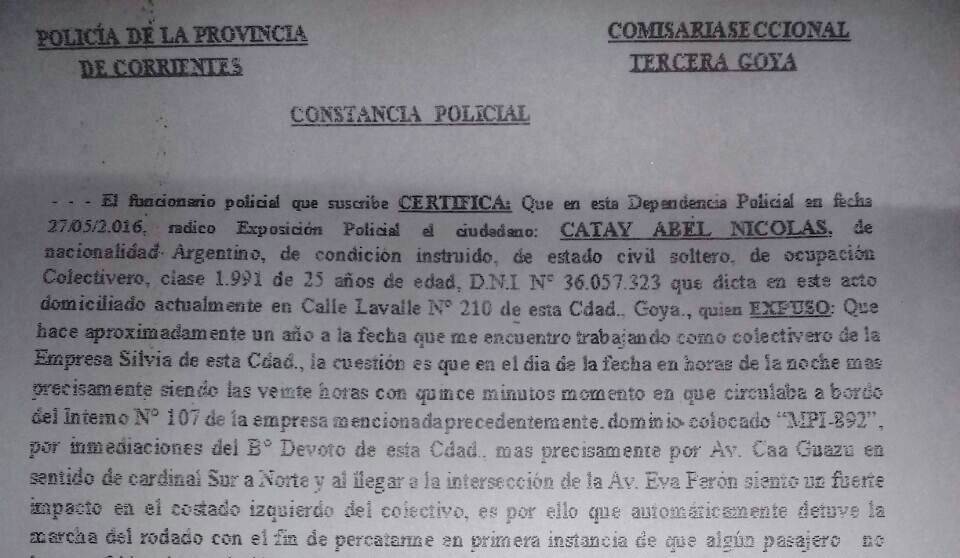 El empresario Osvaldo Spessot salió al cruce de los dichos que se dio en la reunión llevada a cabo en las oficinas de la URII de la Policía de Corrientes, Comisario General Héctor Montiel, y el Jefe de la Cria Tercera con jurisdicción en zona sur de la ciudad, Crio Inspector Marcelo Aquino, este último expreso que no se registró ninguna denuncia, pero Spessot hizo llegar la copia de la misma realizada el 27/05/2016. La afirmación que no tenía conocimiento fue ante Comisión de Transporte de la municipalidad, y no cayó bien al empresario, quien se mostró muy molesto, ya que un oficial ayudante recibió al chofer de la unidad atacada con piedras y realizo la constancia policial.