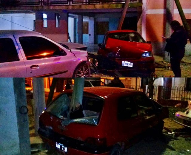 En la noche del viernes se registró un impresionante accidente de tránsito a la altura de Saladas al 287 en zona norte de Goya, donde según se pudo saber conductor identificado como David Ferrero Martínez que iba a bordo de un Renault Clío color gris se descompenso y causo el hecho que pudo ser tragedia al chocar de frente con otro Renault Clío color rojo que estaba estacionado, estando dentro José Silvero junto a su hijo de 2 años. En el impacto el rodado estacionado fue arrastrado varios metros, terminando la marcha contra un poste de tendido eléctrico que fue partido a la mitad. Fueron asistidos por Bomberos y llevados al Hospital en ambulancia. IMAGENES