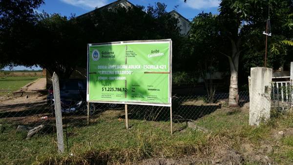 “A fin de dar respuesta efectiva a una inquietud de la comunidad educativa de la zona rural de Derqui y evitar el desarraigo por una educación secundaria, estamos construyendo un edificio que albergara la extensión áulica de la Escuela 421 “Catalina Billordo” de esta localidad empedradeña “, señaló el ministro de Obras y Servicios Públicos, ing. Aníbal Godoy. También anunció que en poco tiempo más comenzaran trabajos de cerramiento perimetral y la construcción de un playón deportivo en el Club Tapé Apó de la ciudad de Empedrado.