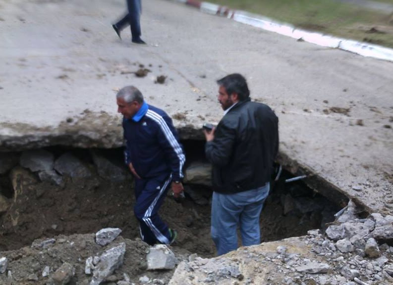 Equipo de pluviales del municipio inició trabajos en esa esquina tras un hundimiento, al empezar la obra de reparación se encontraron con que el suelo estaba socavado en un 60%, la superficie se encontraba superficial con una capa de asfalto.