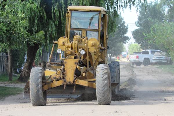 Despliegue de máquinas y operarios municipales para mejorar las calles de tierra en los barrios