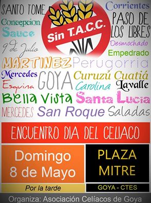 La asociación de celiacos Goya comunica que este jueves 5 de mayo se va entregar nuevos módulos en C.I.C. NORTE de 14 a 16 hs. Además convocan a encuentro en plaza mitre por el día del celiaco.