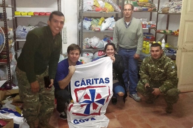 Para ayudar a los afectados por la emergencia hídrica, el Voluntariado Goya colectó donaciones en el día inaugural de la 41ª Fiesta Nacional del Surubí. Posteriormente en un camión del Batallón de Ingenieros de Monte 12, trasladaron lo recaudado hasta la sede de Cáritas Diocesana por Tucumán 557.