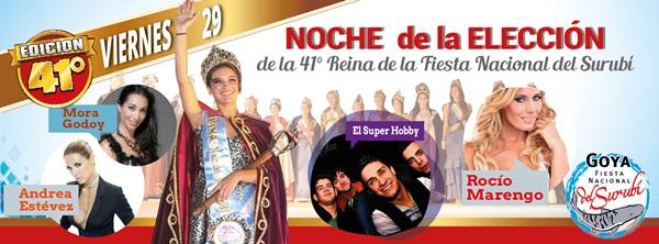 Esta noche la pasarela del escenario Juan Melero será testigo de la coronación de la nueva Reina Nacional del Surubí. Además, contará con la presencia de Rocío Marengo y Andrea Estevez, quienes van a estar acompañando el desfile de las 12 postulantes. También la gran bailarina y coreógrafa Mora Godoy estará presentando su espectáculo de tango.