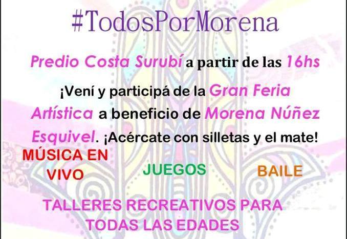 Costa surubí a beneficio de Morena Nuñez Esquivel de 1 año y 10 meses, a quien el 8 de junio de 2015 se brindó el diagnostico de retinoblastoma bilateral. Morena es goyana, con el aporte solidario a través de colectas, venta de rifas, pollos asados, risotto y otros eventos artísticos, pudo ser operada en la clínica de la fundación Zambrano de su ojo izquierdo (el cual fue enucleado) realizo además quimioterapias intra-arteriales de altos costos económicos.