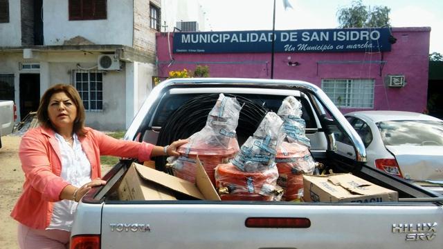 El intendente de San Isidro la señora Vilma Ojeda realizo compra de materiales y trafo para mejorar la calidad energética en la región. Dicha compra se realizo con recursos propios de la gestión. Los equipamientos se instalaran a la brevedad para ayudar al servicio energético que al día de hoy la provincia a dejado en el olvido a esa región .
