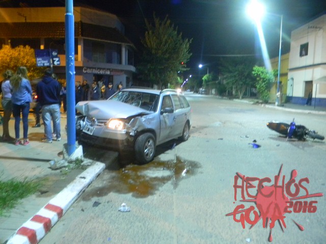 En la madrugada del sábado se registro un siniestro vial en calles Belgrano esquina Entre ríos en donde una motocicleta colisiono contra una camioneta. Los ocupantes del rodado menor son Pared Gustavo quien circulaba a bordo de una Moto Brava 110c/c sin dominio impactaron contra una Berlingo chapa patente PGO 375.