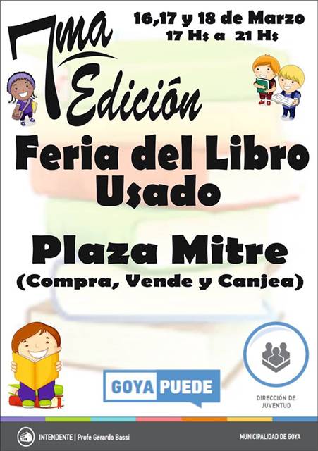 Hoy en Plaza Mitre desde las 17 a 21 horas por 7mo año consecutivo la Feria del Libro Usado. Una vez más, estará a cargo de la Dirección de Juventud recientemente a cargo de Lisandro Paleari. Se invita a todos los ciudadanos a participar no sólo para la compra sino para venta de material literario como todos los años.