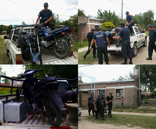 En la mañana del martes personal de la comisaria Segunda y Primera de Goya realizo allanamientos en barrio 432 viviendas y San Ramón por robo ocurrido a mano armada en una finca de familia Zoilo en Carolina, dos ladrones se alzaron con electrodomésticos y una camioneta Duster que horas más tarde apareció abandonada en Goya. Personal policial logro recuperar lo robado, la motocicleta y el arma de fuego que fueran usados para el ilícito, además motocicletas que fueran robadas en diferentes puntos de nuestra ciudad y Carolina. En tanto, se pudo detener a una persona de apellido Centurión secuestrándose un arma de fuego calibre 22 largo, mientras otra persona se encuentra prófuga quien está siendo buscada por personal policial.