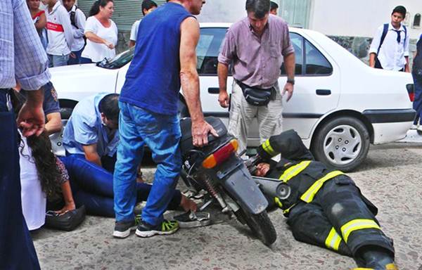 A media mañana del miércoles una joven de apellido Regueira, que se desplazaba a bordo de una motocicleta Guerrero trip, derrapo y cayó al asfalto por calle Juan Esteban Martínez al 80, un fierro del rodado se incrusto en un pie de la conductora, causándole serias lesiones. Bomberos debió sacar el elemento del rodado, la motociclista fue trasladada al Hospital para ser asistida, una autobomba acompaño con sirenas a ambulancia para un mejor libre paso sobre avenida José Jacinto Rolon, porque era necesario la asistencia de forma urgente. IMÁGENES