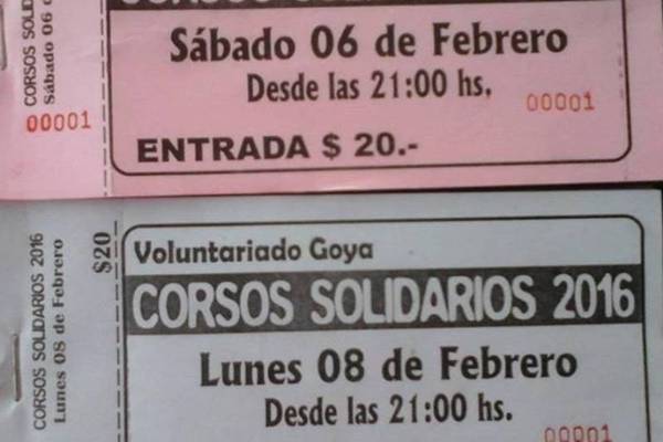 El Coordinación del Voluntariado Goya, informó para la difusión pública, los totales de la recaudación durante las dos noches de Corsos Solidarios 2016. A un costo general de entradas de 20 pesos por mayores de 12 años y un total de 12.811 boletos vendidos ambas noches: la recaudación total fue de 256.220 pesos.