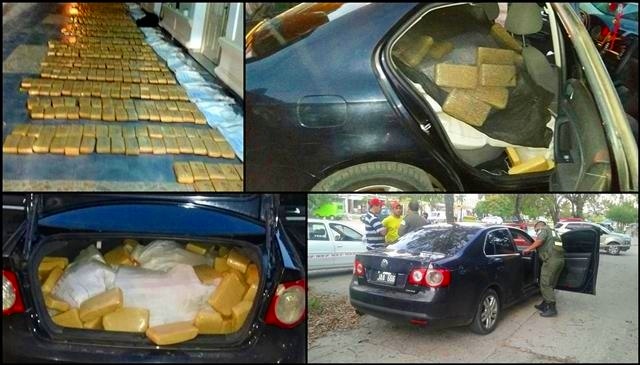 Todo ocurrio a las 19:30 de este lunes 1, donde dos personas subieron a un automóvil VW Vento color negro, patente JAA666 y emprendieron la huida a gran velocidad, luego policia y gendarmeria detuvieron a uno de ellos, identificado como una persona de 29 años de apellido Quinteros quien llevaba consigo una identificación de la policía del Chaco, en tanto el complice es intensamente buscado. El rodado con la droga, esta registrado en Goya. IMAGENES