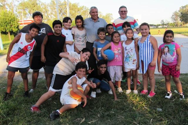 La cancha de básquet del Barrio Los Eucaliptos está siendo refaccionada con aportes municipales debido a un profundo deterioro. El intendente Gerardo Bassi supervisó el avance de la obra y compartió la tarde con profesores, niños y adolescentes que concurren diariamente al lugar.