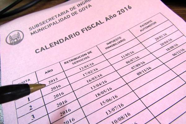 Mediante la Resolución N° 1.428/15, se fijó el Calendario Fiscal 2016 que contempla los impuestos de retribución de servicios, impuesto inmobiliario y patente automotor.