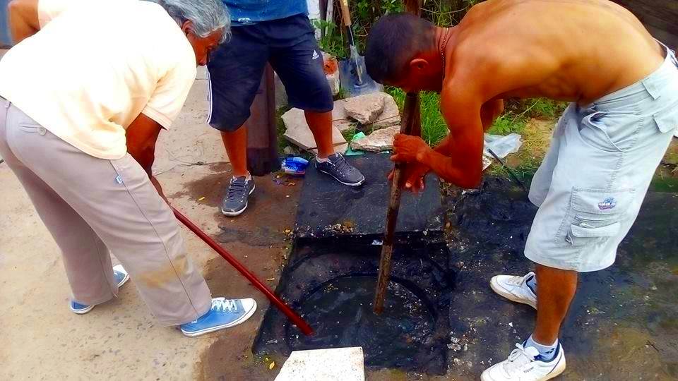Desde hace varios días vecinos reclamaron a la empresa Aguas de Corrientes, solucionen problema en una cloaca ubicada en pasillo por calle 9 de Julio al 1250, del barrio Inmaculada. En la tarde del miércoles artos del olor nauseabundo de las aguas servidas, decidieron ellos mismos destapar y lograr que escurra por la cañería y no por la vereda como se venía dando, “Hoy estuvieron personal de la empresa, pero fueron y miraron en otro lado, no donde está el problema”, manifestaron muy molestos los usuarios. (Imágenes de vecinos trabajando en la cloaca)