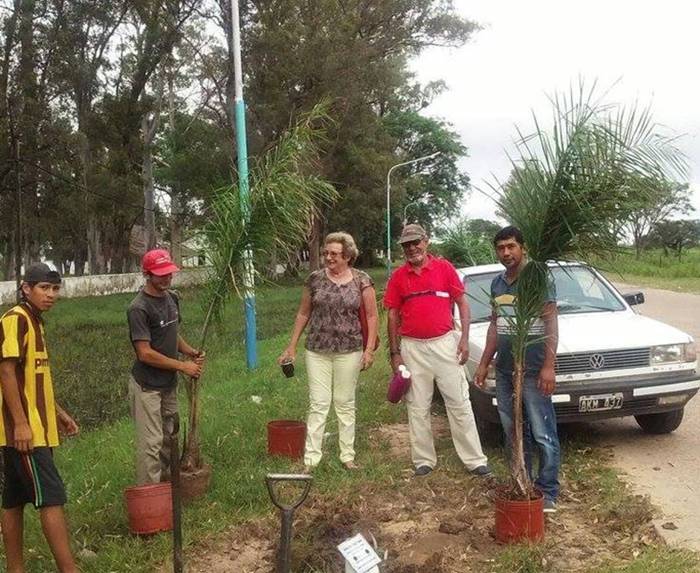 Equipo de la Dirección de Derechos Humanos, junto al Intendente Municipal Profe Gerardo Bassi, repuso ejemplares de palmeras sobre Avenida Obispo Alberto Devoto.