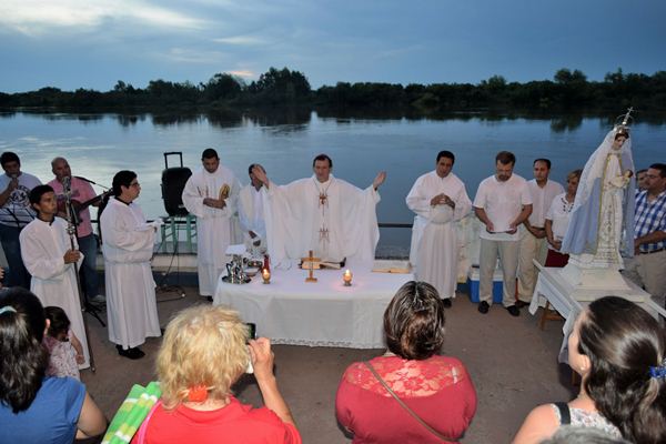El obispo diocesano, monseñor Adolfo Ramón Canecin, encabezó una procesión que se realizó desde la catedral hasta la costanera de Goya, con la imagen de la Virgen del Rosario, para elevar una plegaria para que baje el nivel del Río Paraná y cesen las inundaciones. Acompañado de sacerdotes y la masiva participación de los feligreses se realizó la celebración de la Santa Misa en la costa del río.