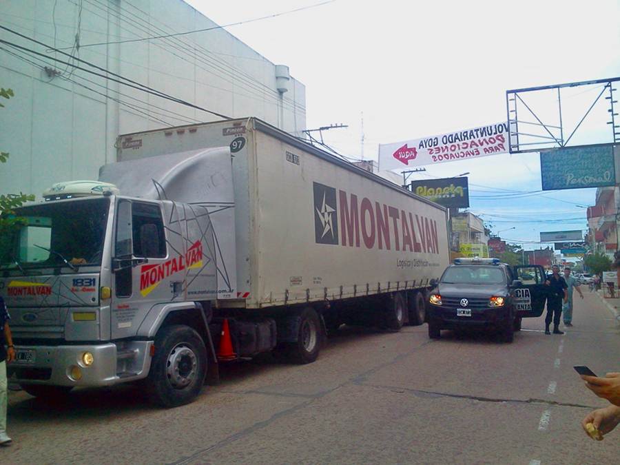 En la mañana del lunes un camión enviado desde el municipio de la Matanza ingreso a Goya con donaciones para los pobladores afectados por la creciente del rio. Custodiado con una patrulla y ambulancia llegó pasadas las 10 hs. IMÁGENES