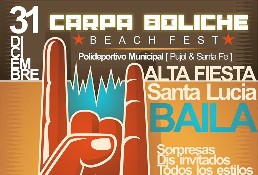Ante los cambios climáticos Rio Group informo que la Beach Fest que se realizaría el 31 en la playa de Santa Lucia se traslada al polideportivo de Santa Lucia (Pujol y Santa Fe). En esta oportunidad se suman a la organización e invitación del evento las comparsas Yeroki Vera, Bella Lucia, Yaci Bera, Salome & Uru Bera. Las anticipadas para la carpa boliche la podes adquirir en LUMA, HELADERÍA PIACERE y con las Comparsas en (Santa Lucia) y en Goya en La Place Resto Bar. La carpa boliche no se suspende por lluvia. No te pierdas la última fiesta en el marco de los 400 años de Santa Lucia. Solo por 10 días estarán las #EntradasEnVentaLIMITADAS. Valor de pulsera $100. Dj Invitado Haraldo Schröder y Gabriel Dominguez.