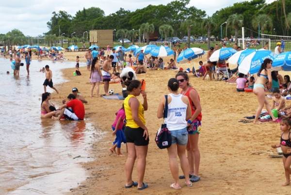 Una temperatura moderada fue el marco de la tarde de domingo en la playa ´El Inga´, llamada así por el emblemático árbol de flores blancas que cubre las costas de Goya. Este Balneario Municipal cuenta conunos recientes 200 metros de costa boyada y arena. El día de hoy fue protagonista de una importante concurrencia de bañistas que ya comienzan a palpitar el verano. La postal de sombrillas con el emblemade ´Goya Puede ´, y el grupo familiar o de amigos era una constante que acompañaba el rio y el verde de la naturaleza.
