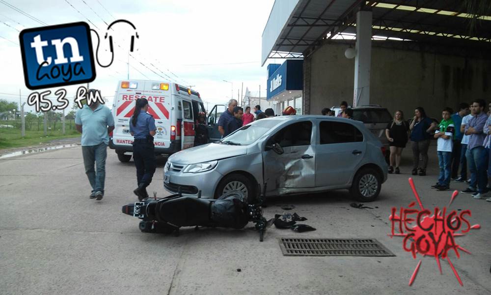 Ocurrió a las 06 hs de este sábado frente al paseo la Anónima en zona norte, donde una moto Honda Invicta de color negro dominio 717 KJU guiado por un joven Goitia Augusto quien circulaba sin casco impacto de lleno contra un automóvil VW TREND de color gris chapa patente IDP 268 conducido por Cardozo. Al conductor del rodado mayor le dio negativo el test de alcoholemia, en tanto al motociclista no se le pudo realizar debido a que presentaba serias heridas en el rostro.