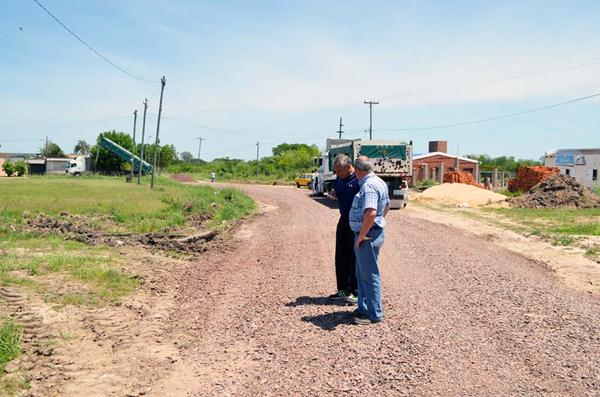 Los trabajos se realizan en la calle Constitución Nacional, una calle de acceso al barrio Alem, donde los vecinos aportaron parte del material de estabilizado para realizar la obra.