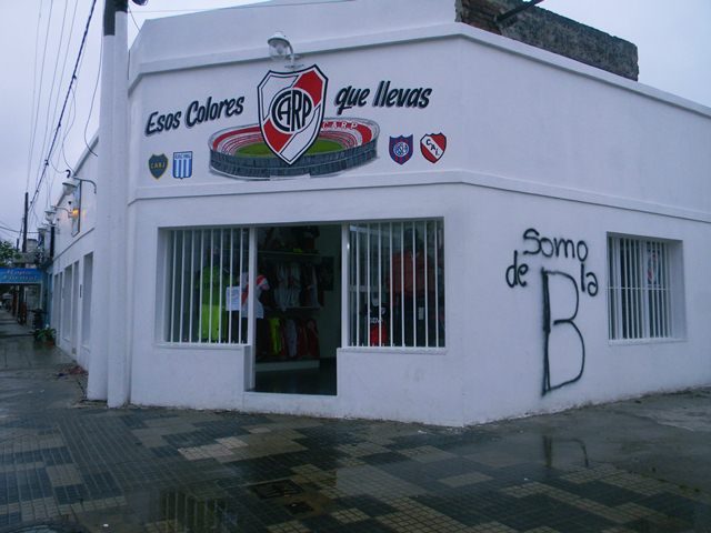 Local comercial goyano ubicado en Avda. Sarmiento y José Gómez dedicado a la venta de indumentarias deportivas especialmente de River Plate, fue víctima de algunos hinchas inescrupulosos que le pintaron con aerosol en la pared “SOMO DE LA B”, el propietario hablo con cronistas de TNGOYA, y manifestó que el acto vandálico ocurrió seguramente en la madrugada del miércoles durante el corte de energía, además manifestó que el pasado fin de semana ya fue blanco, porque en una de las vidrieras le arrojaron una piedra, pero afortunadamente la reja amortiguo, o sino hubiese sido un gran daño, ese vidrio sale alrededor de $10 mil pesos, relato.