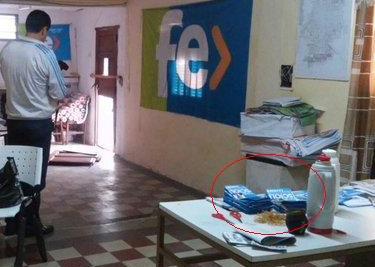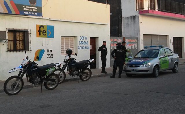 Promediando la 06 hs del sábado personal policial fue alertado porque una sede partidaria ubicada por calle colon al 1870 habría sido víctima de vandalismo, los efectivos acudieron al lugar dialogaron con vecinos e indagaron en los alrededores pero nadie diviso nada, otros dijeron “hasta altas horas de la noche hubo gente”. Se maneja una fuerte hipótesis de AUTO ATENTADO, por parte de la línea política que conduce Darío Zapata, “FE” que lo lleva como concejal y a nivel nacional pide votar a Macri como presidente, pero lo llamativo y sorprendente del caso fue que se encontró cientos de boletas AZUL, la de Daniel Scioli.