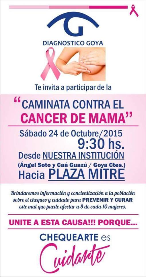 Diagnostico Goya invita a participar de la caminata en la lucha contra el cancer de mama hoy a las 9.30 hs en plaza Mitre