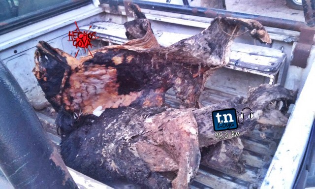 Personal policial del PRIAR Goya, en un allanamiento secuestro 300 Kilos de carne faenada en abigeato en el paraje San Isidro del departamento de Goya. Fuentes revelaron a cronista de TNGOYA, que un hombre de apellido Pitaluga había denunciado robo de ganados, de allí se montó una investigación y tras la orden judicial lograron recuperar lo robado y además cueros con marcas de otros animales denunciado como sustraído por otros lugareños. IMAGEN