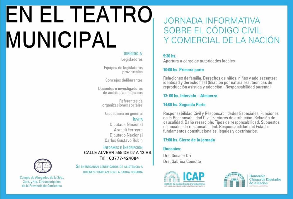 La jornada informativa sobre el código Civil y Comercial de la Nación se realizara en el teatro municipal