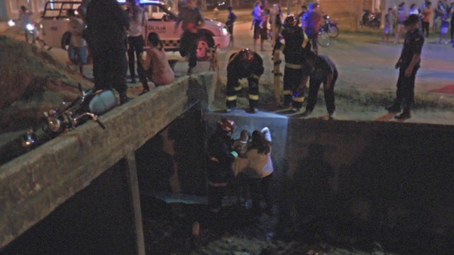 Motociclistas esquivan montículo de tierra y caen a canal de cielo abierto