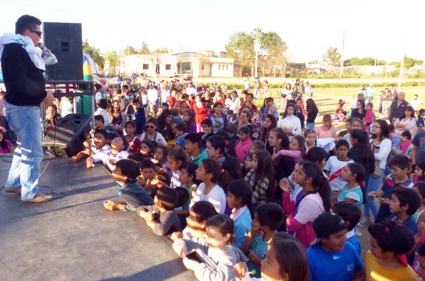 Este domingo, la Dirección de la Juventud organizó una jornada recreativa para los niños del barrio San Martin, en zona Sur de nuestra ciudad. Hubo peloteros, juegos deportivos, sorteos de obsequios, música y mucha alegría. El payaso Chispita animó el evento al que también asistieron chicos del barrio Belgrano y 25 de Mayo.