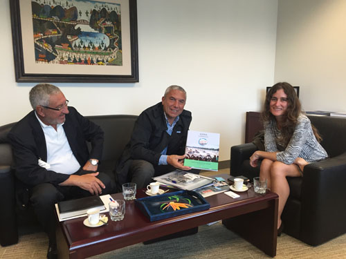 El Intendente de Goya junto al Secretario de Planeamiento Municipal, Miguel Graco; en su llegada a Washington DC para la “Primera Semana de Ciudades” organizado por el Banco Interamericano de Desarrollo, se reunieron con Andrea Molinari, en las oficinas del BID, 1300 New York Avenue NW.