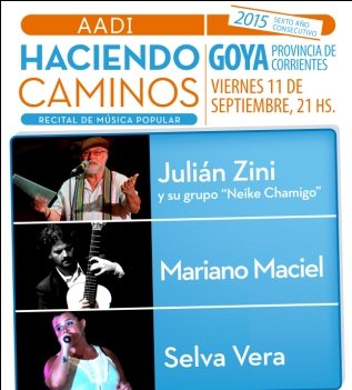 Con las grandes actuaciones de JULIÁN ZINI Y su grupo “NEIKE CHAMIGO”, de MARIANO MACIEL, y de SELVA VERA, la Asociación Argentina de Intérpretes (AADI) presenta el recital de música popular AADI HACIENDO CAMINOS.